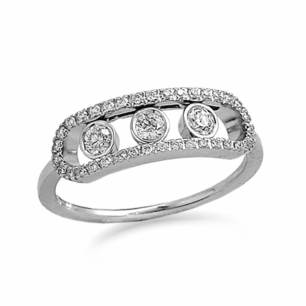 Representing you Past, Present and Future together. We love our fluid settings that allow light around your stones. Play around with a combination of cuts.