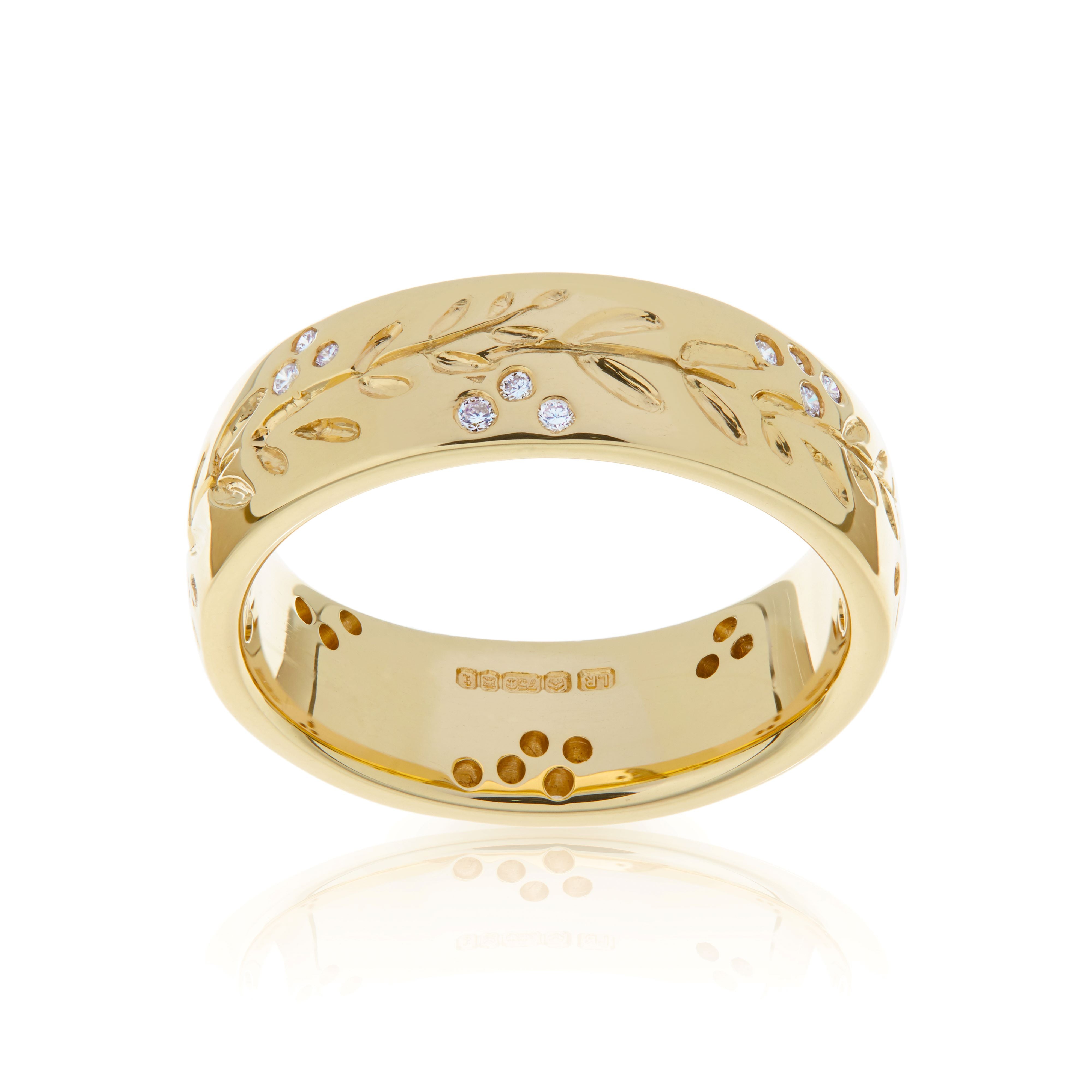 The whole ring is made in our William Street Workshop, here in Edinburgh. Keeping a low carbon footprint. Recycled materials are used wherever possible.