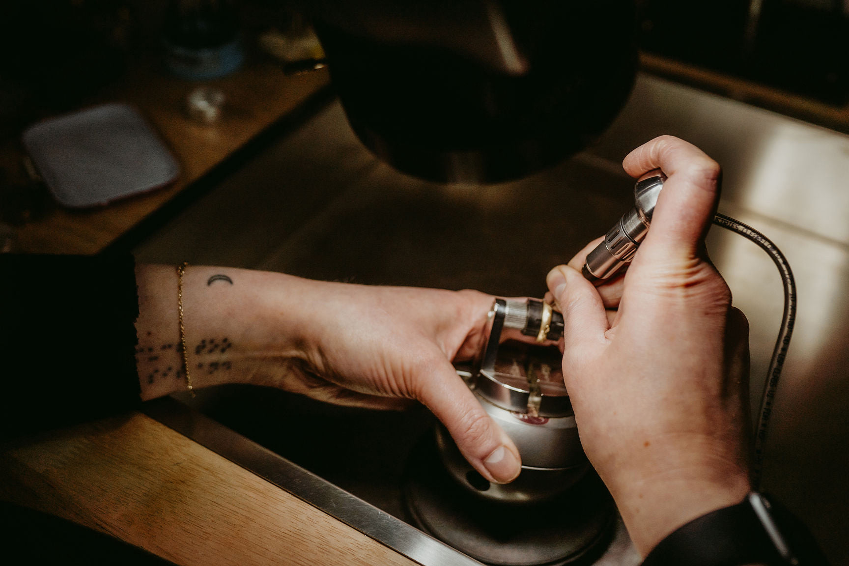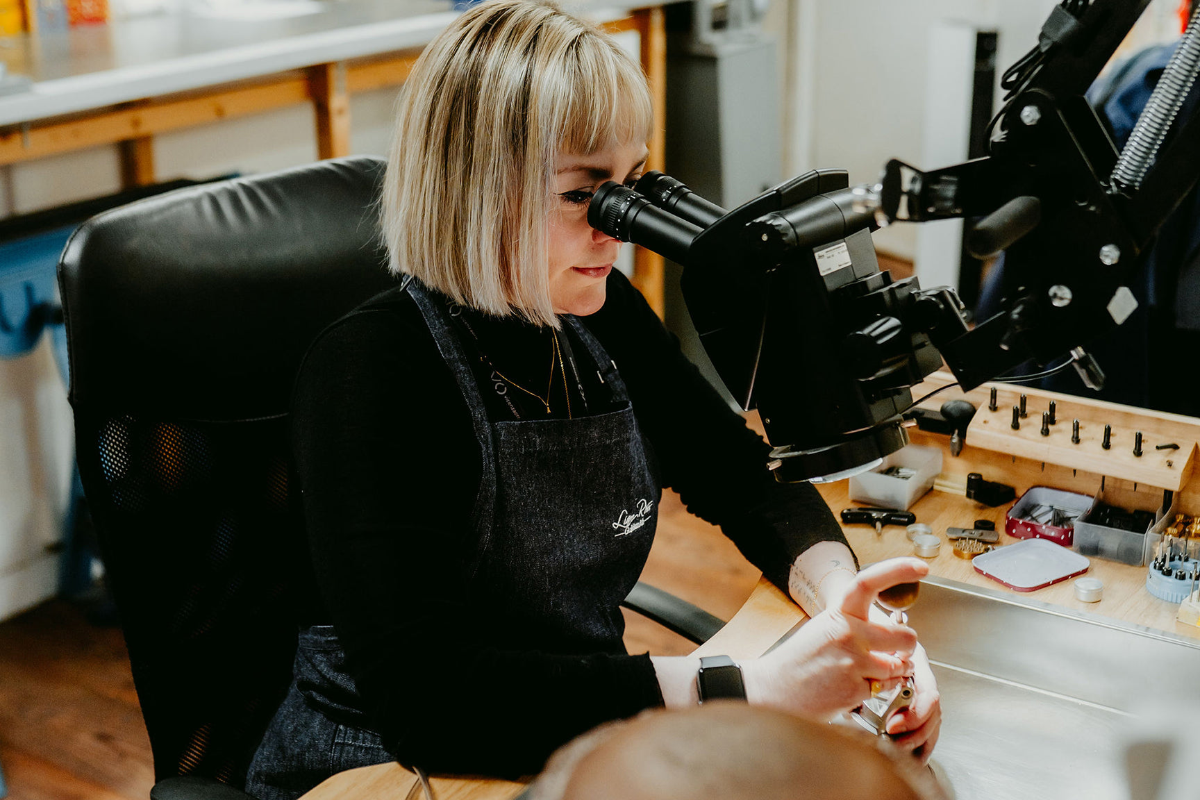 What sets us apart is our commitment to crafting each piece of jewellery in-house, right here in Edinburgh. From design to casting to finishing touches, our skilled team of goldsmiths brings decades of expertise to every creation. Our beautiful showroom at street level welcomes you into our world, while our modern workshop, situated below, buzzes with creativity and precision.